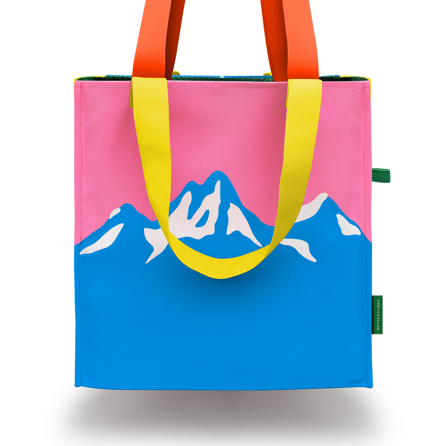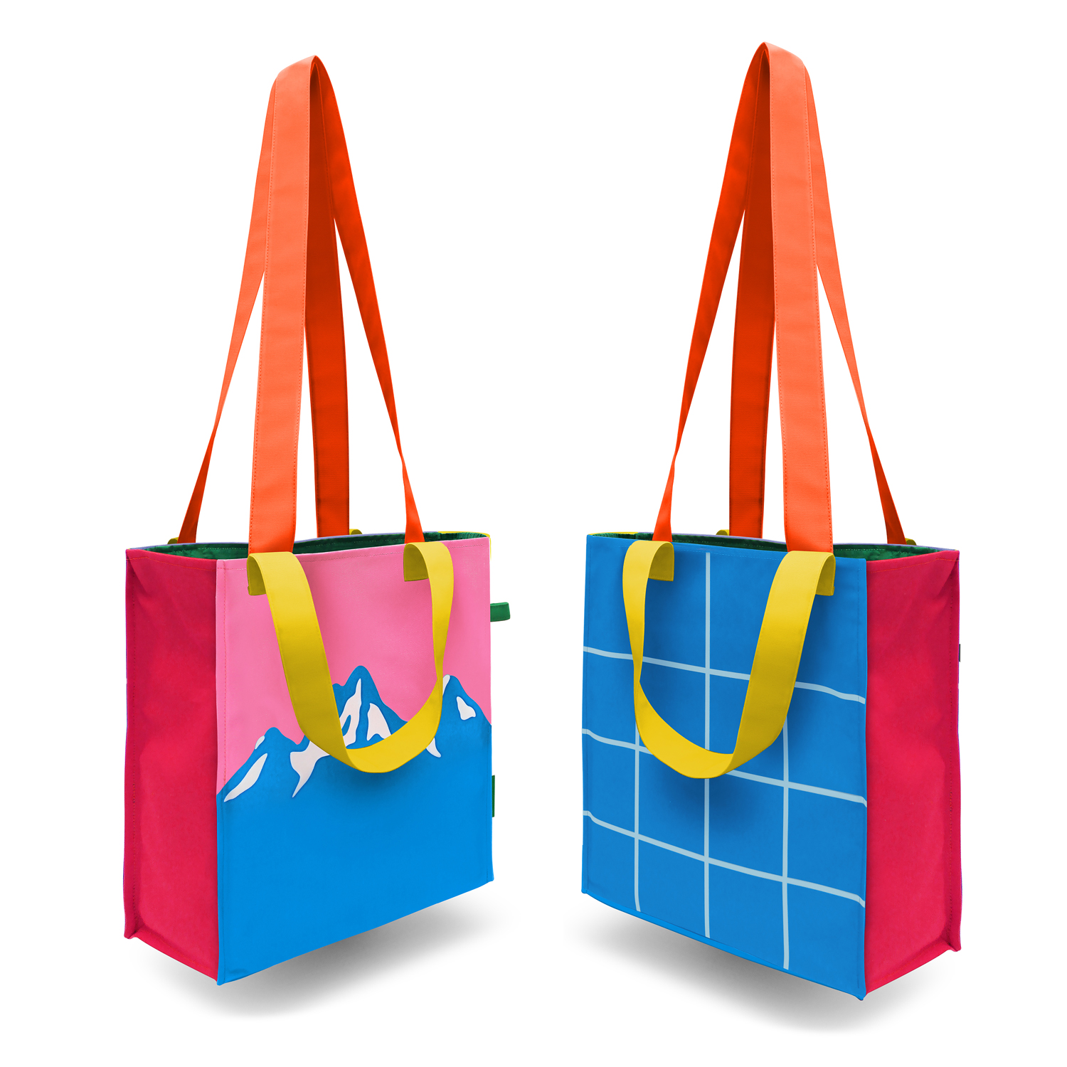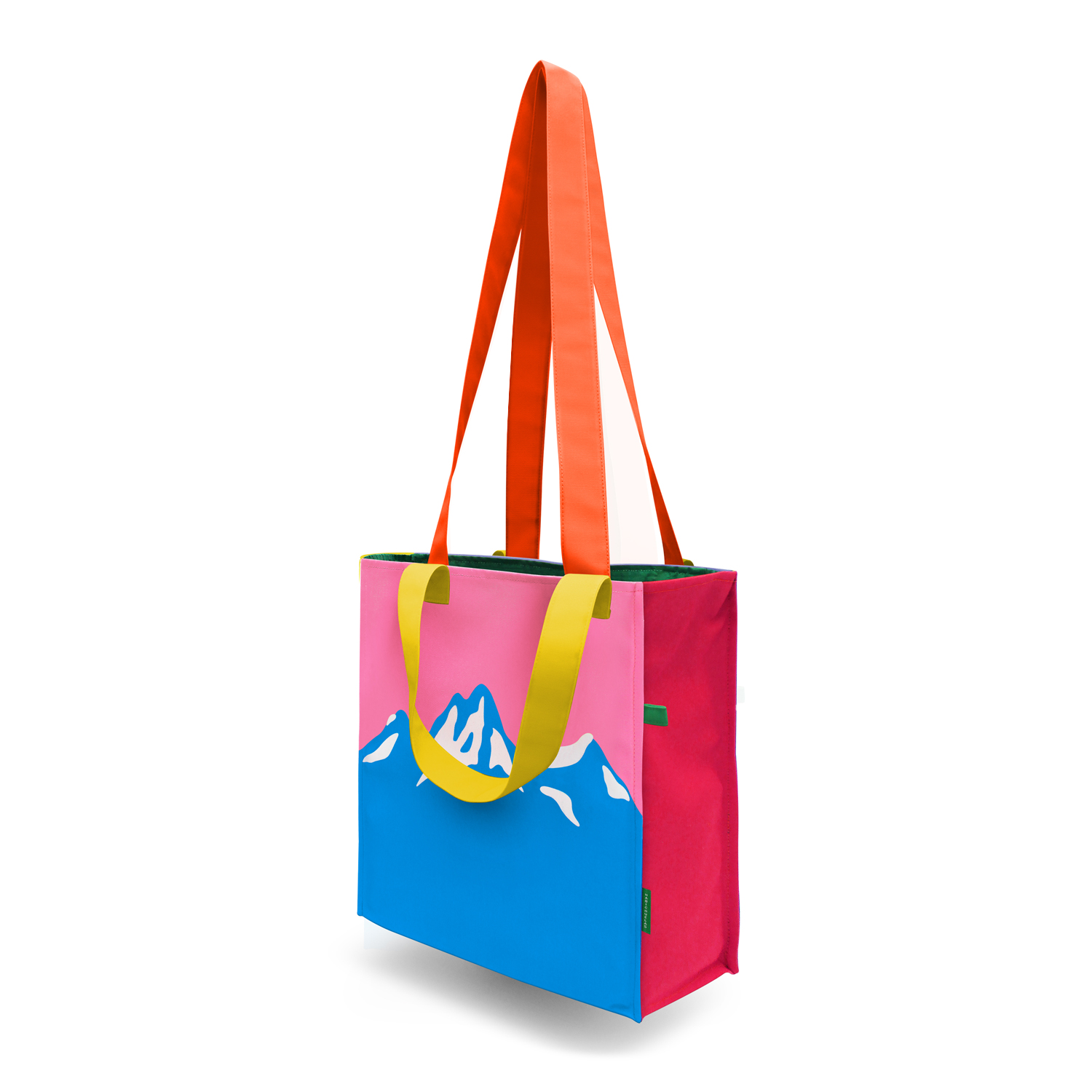 Bolso de tela estampada con forro de gabardina y bolsillo interno.